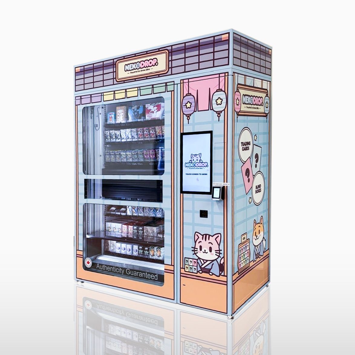 NekoDrop™ transforms vending into a game of chance and excitement. Every vend is a mystery, every reveal a reward. Packed with curated collectibles — from kawaii characters to sealed Pokémon packs — the experience is designed to surprise, delight, and turn curiosity into repeat play.